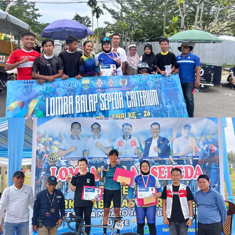 MUARO JAMBI – Turun di Balap Sepeda Criterium HUT ke-26 Kabupaten Muaro Jambi Tim Putri Ikatan Sport Sepeda Indonesia (ISSI) Tanjab Barat raih medali perunggu.